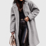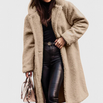 Envuélvete en comodidad y calidez con el Abrigo Largo de Piel de Oso Mila. Con una textura ultra suave y una silueta relajada, este abrigo ofrece un estilo sin esfuerzo y calidez confiable para los días más frescos. Su longitud extendida proporciona una cobertura adicional, convirtiéndolo en una prenda imprescindible para salidas diarias y momentos casuales.