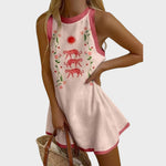 Con un aire ligero y relajado, el vestido Marinha añade un toque artístico a tu silueta. Las rayas rojas verticales alargan tu figura, mientras que los motivos marítimos le dan un aspecto único y lúdico. Ideal para un día de paseo, un almuerzo junto al mar o unas vacaciones relajantes.