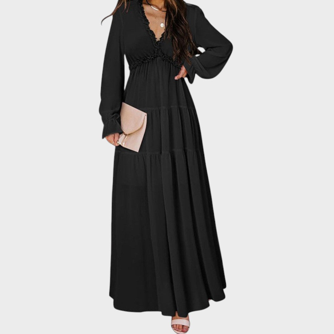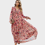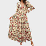 El vestido Helen encarna la gracia y la versatilidad. Ideal tanto para ocasiones informales como elegantes, este vestido largo con estampado floral presenta un llamativo escote en V y mangas largas que combinan comodidad y elegancia.