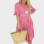Pasea por tus días de verano con estilo con el vestido de lunares Claire, una prenda ligera y encantadora diseñada para estar cómoda y segura en todo momento. La silueta fluida y la vibrante energía del estampado lo convierten en la elección perfecta para los días cálidos, las noches festivas y todo lo demás.