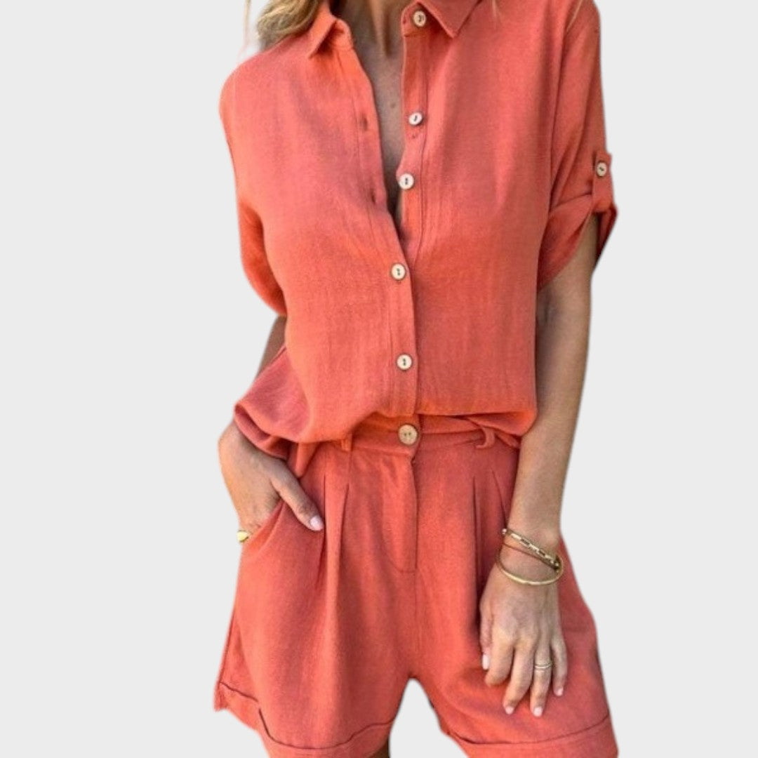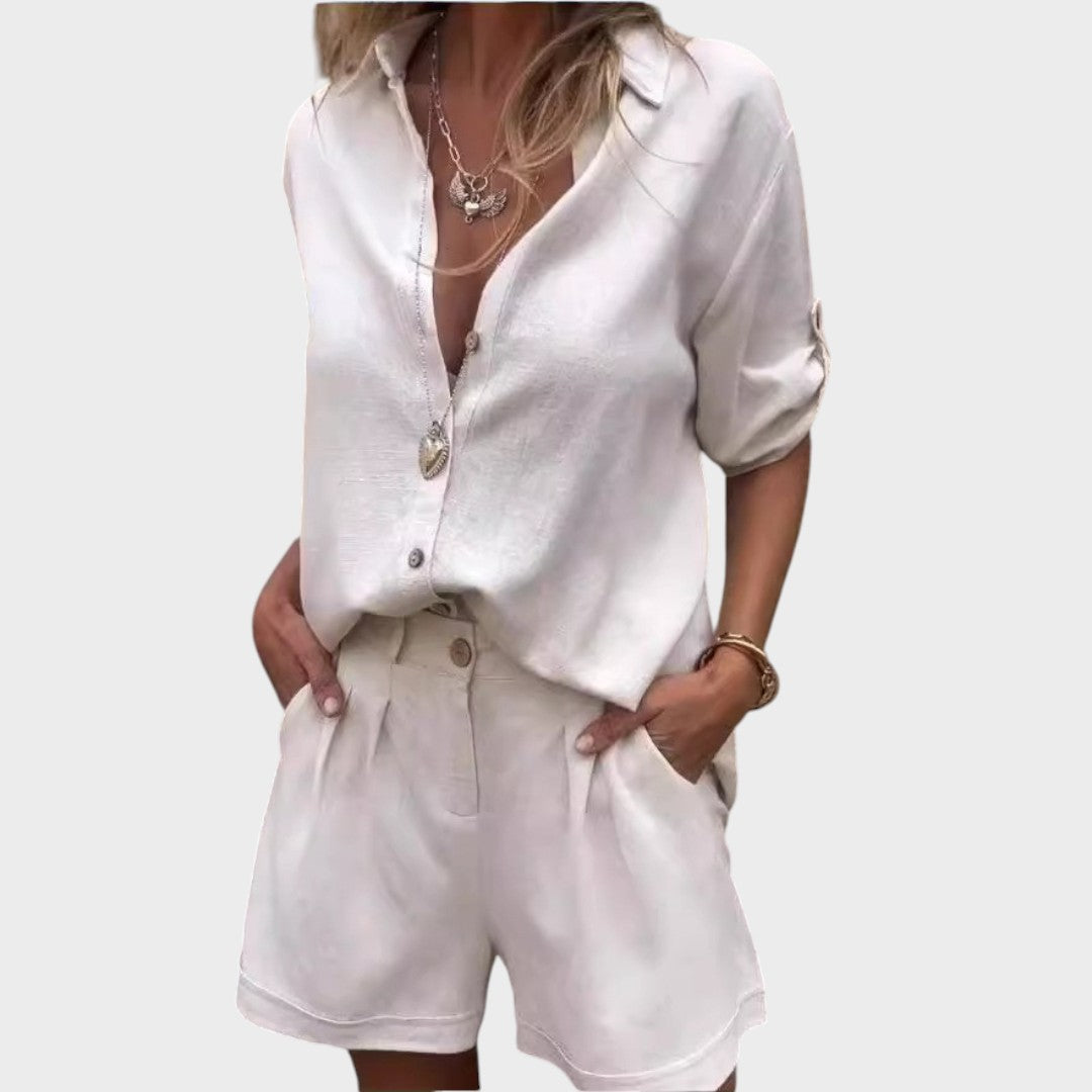 Respira, descansa y siéntete lo mejor posible con Sofia. Este desenfadado conjunto de lino es la prenda perfecta para los cálidos días de primavera y las sofocantes noches de verano. Elegante, cómodo y casi agotado.
