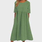 Lucia | Vestido de algodón con cuello redondo y detalle en la cintura