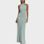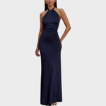 Elegancia Sofisticada - Escote halter y volantes delanteros que irradian estilo refinado, mientras la espalda escotada aporta un aire sensual.